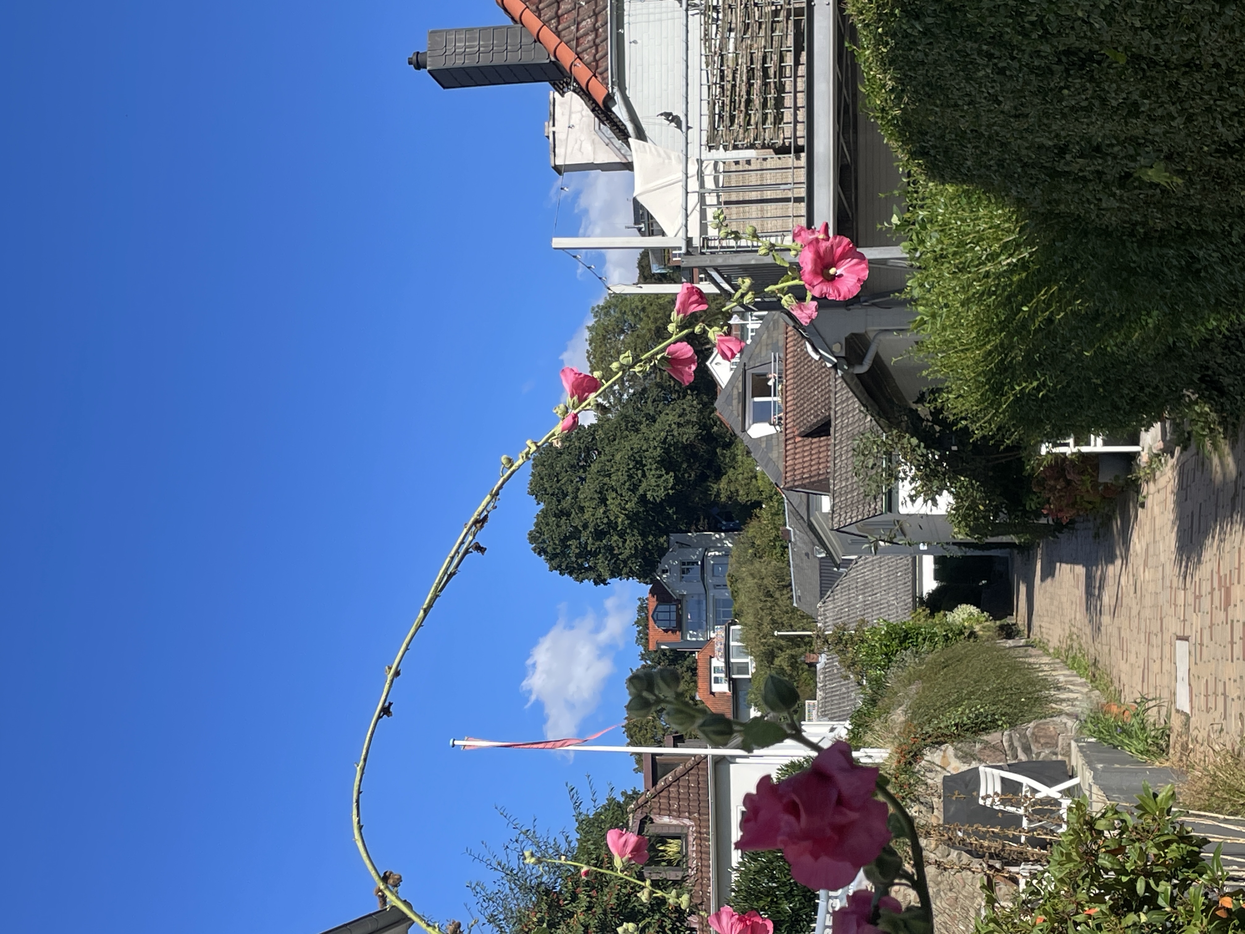 Es muss was schönes in Deinem Rücken sein, weil alle Häuser da hin Ausblick haben. Ist hinter Dir ein Wasser, egal erstmal ob Fluss, Meer oder See?