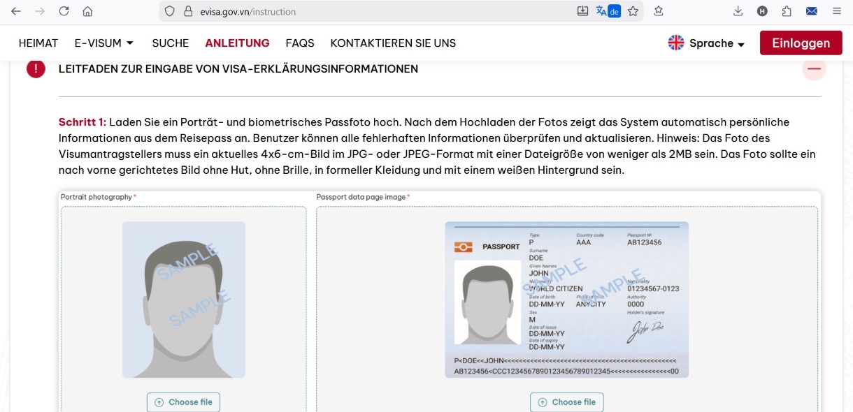LEITFADEN ZUR EINGABE VON VISA-ERKLÄRUNGSINFORMATIONEN, klick hier