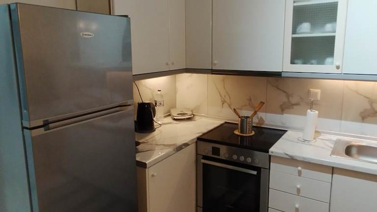 Die Ferienwohnung verfügt über eine voll ausgestattete Küche mit einem Kühlschrank und einer Kaffeemaschine, sowie über Grillmöglichkeiten für gesellige Abende im Freien.