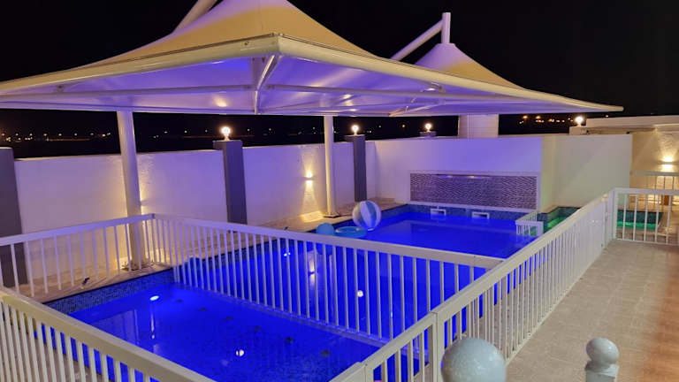 Das سمارت شاليه: Smart Chalet bietet ein heimeliges Ambiente mit verschiedenen Annehmlichkeiten wie einem Garten, einem Innenpool und einem Whirlpool. Die Unterkunft wird privat geführt und hat eine 24-Stunden-Rezeption. Verschiedene Gemeinschaftsbereiche laden zur Entspannung ein.