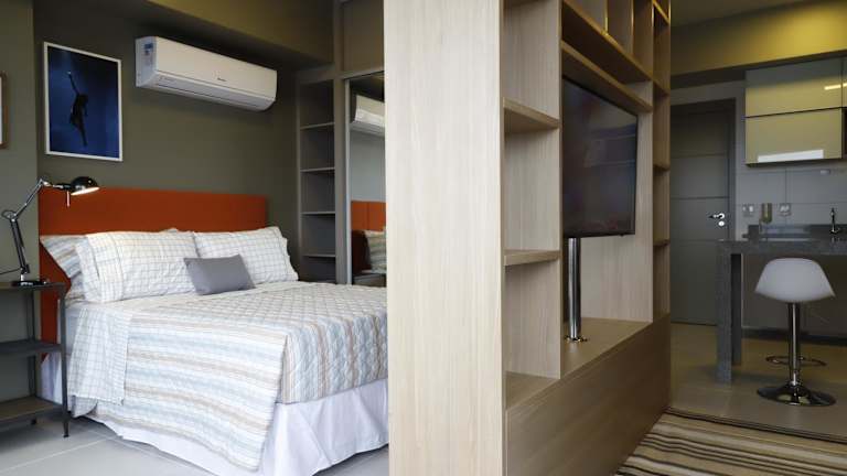 #1 Sofisticado Estúdio na Boaventura da Silva bietet Übernachtungsmöglichkeiten mit kostenlosem Wifi, Klimaanlage, einem Aussenpool sowie einem Fitnesscenter. Diese Ferienwohnung verfügt über eine Terrasse mit Stadtblick und bietet eine Vielzahl von Annehmlichkeiten.