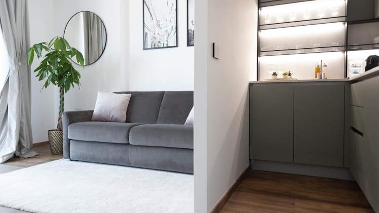 Die Ferienwohnung mit Klimaanlage besteht aus einem Schlafzimmer, einem Wohnzimmer, einer voll ausgestatteten Küche mit Kühlschrank und Kaffeemaschine sowie einem Badezimmer mit Bidet und Dusche. Handtücher und Bettwäsche werden bereitgestellt.