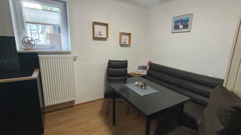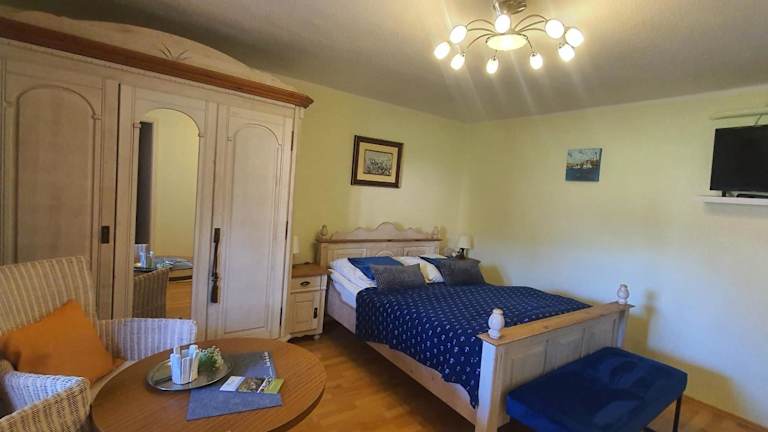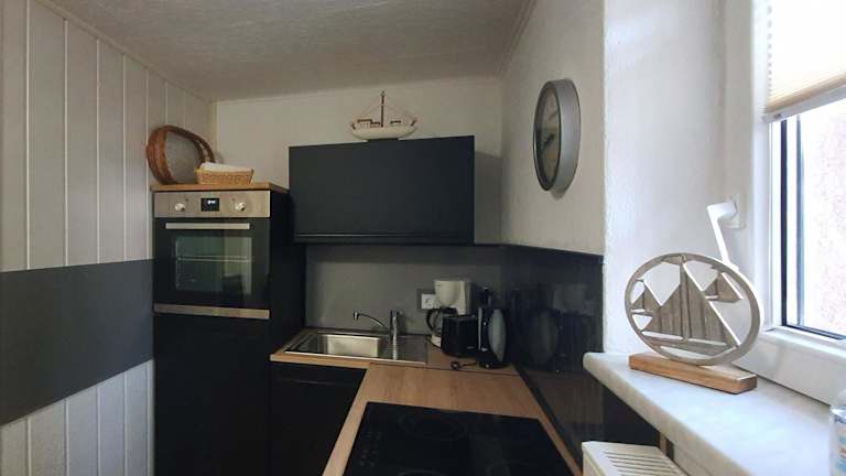 Die Ferienwohnung setzt sich aus einem Schlafzimmer, einem Wohnzimmer sowie einer voll ausgestatteten Küchenzeile zusammen, die mit einem Kühlschrank und einer Kaffeemaschine ausgestattet ist. Das Badezimmer verfügt über eine Dusche und einen Haartrockner. Handtücher und Bettwäsche können gegen Aufpreis zur Verfügung gestellt werden.