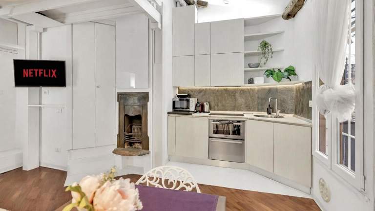 Die Ferienwohnung verfügt über ein Schlafzimmer, ein Wohnzimmer und eine voll ausgestattete Küche mit Kühlschrank und Kaffeemaschine. Zudem gibt es ein Badezimmer mit Bidet und Dusche. Handtücher und Bettwäsche werden bereitgestellt, und die Unterkunft ist klimatisiert.