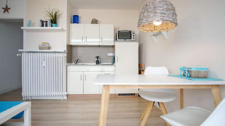 Die Ferienwohnung umfasst ein Schlafzimmer sowie ein Wohnzimmer und bietet eine gut ausgestattete Küche mit einem Kühlschrank und einer Mikrowelle. Handtücher und Bettwäsche werden zur Verfügung gestellt.