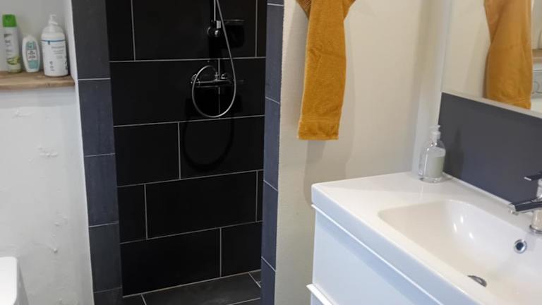 Die Villa umfasst 2 Schlafzimmer, ein Wohnzimmer sowie eine gut ausgestattete Küche mit Kühlschrank und Geschirrspüler. Ein Badezimmer mit Dusche ist ebenfalls vorhanden. WLAN wird kostenfrei angeboten, und Handtücher sowie Bettwäsche stehen zur Verfügung.