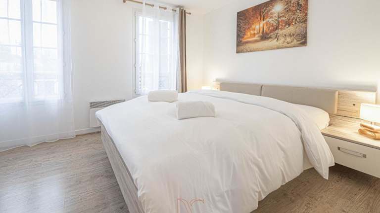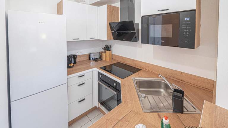 Die Ferienwohnung verfügt über 2 Schlafzimmer, eine Küche mit Kühlschrank und Geschirrspüler, einen Flachbild-TV, einen Sitzbereich und ein Badezimmer mit einer Badewanne. Handtücher und Bettwäsche werden bereitgestellt.
