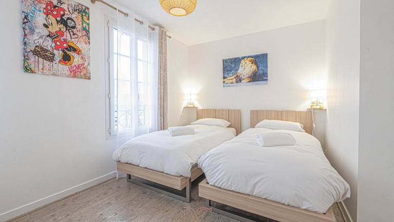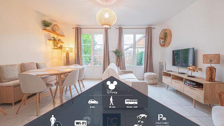 Die Ferienwohnung *Disneyland-Paris* 7pers bietet eine heimelige Atmosphäre mit Stadtblick und verfügt über eine Terrasse sowie eine Kaffeemaschine. Sie ist ideal für Familien und Gruppen und wird von einem privaten Gastgeber geführt. Das Mindestalter für den Check-in ist 18 Jahre.