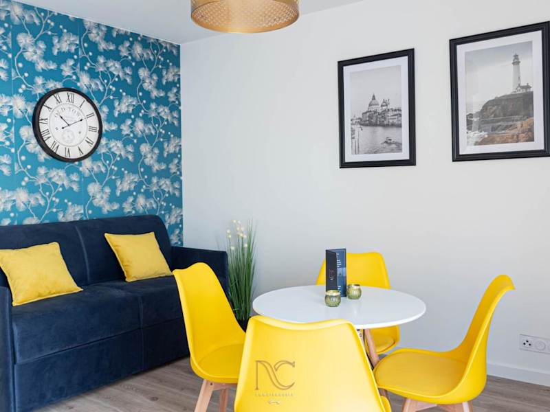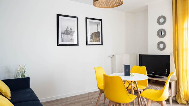 Die Ferienwohnung besteht aus einem separaten Schlafzimmer, einem Wohnzimmer und einem Badezimmer. Sie verfügt über eine voll ausgestattete Küche mit Kühlschrank und Geschirrspüler sowie einen Flachbild-TV.
