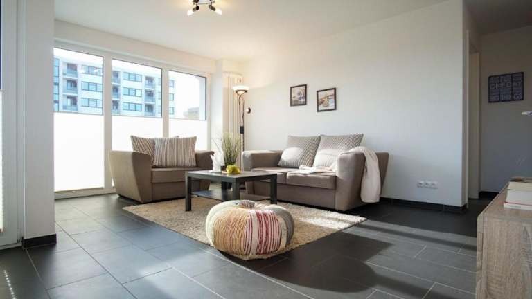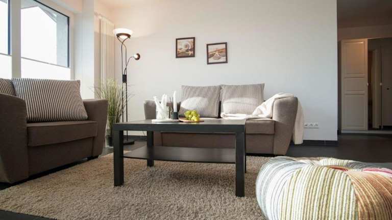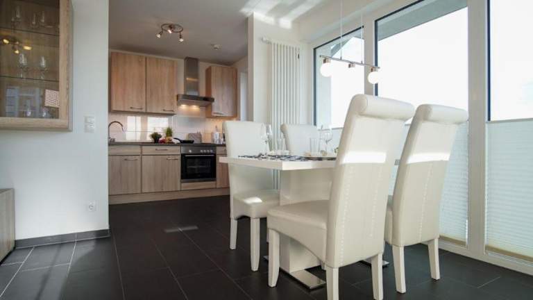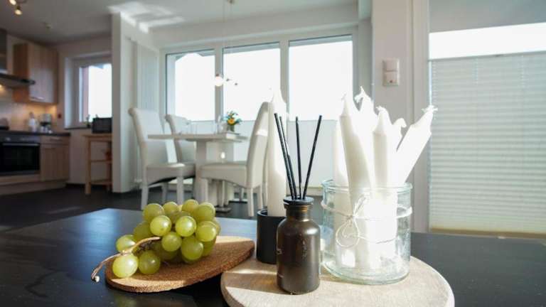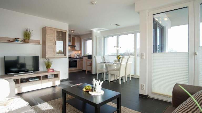 Die Ferienwohnung 'Sandperle' im Haus 'Sanddüne' des Dünenparks Heiligenhafen bietet eine heimelige Atmosphäre mit einem Balkon. In der Wohnung stehen Gästen kostenfreies WLAN sowie eine vollausgestattete Küche zur Verfügung.