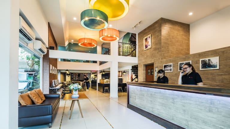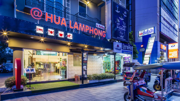 Das @ Hua Lamphong Hotel befindet sich unmittelbar im Zentrum von Bangkok, gegenüber dem Bahnhof Hua Lamphong. Die Entfernung zum Flughafen beträgt ca. 32 km, während das Stadtzentrum in ca. 1,5 km erreichbar ist. Beliebte Viertel wie Silom und Sukhumvit sind bequem zugänglich. Das Einkaufszentrum Siam Paragon liegt etwa 15 Fahrminuten entfernt.