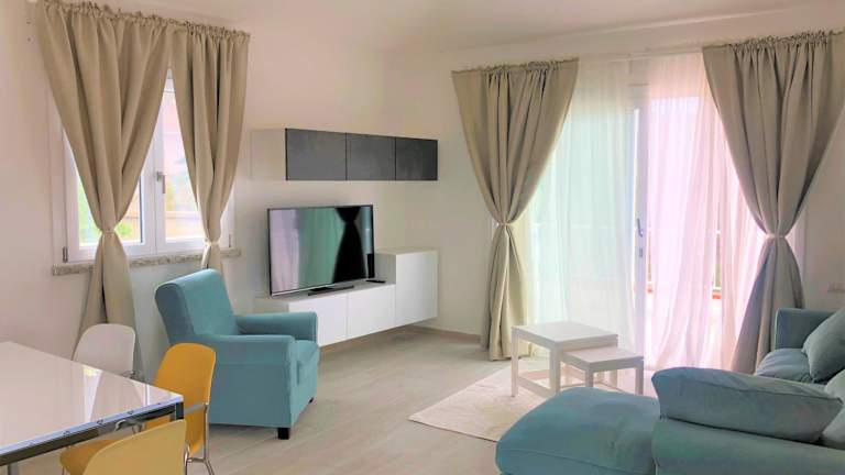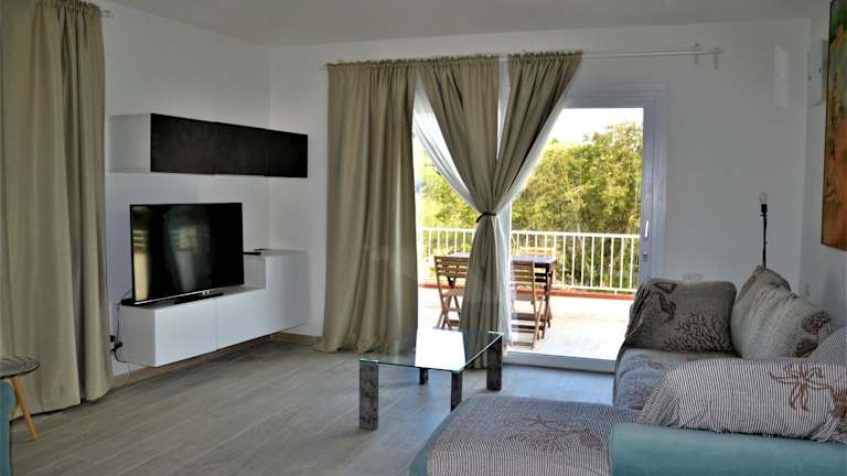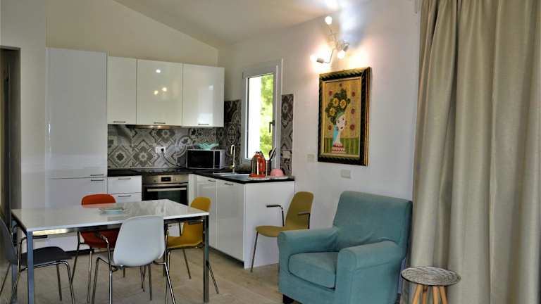 Das Ferienhaus beinhaltet zwei Schlafzimmer, ein Wohnzimmer mit einem Flachbild-TV sowie eine gut ausgestattete Küche mit Kühlschrank und Geschirrspüler. Zusätzlich stehen zwei Badezimmer mit einem Bidet zur Verfügung. Handtücher und Bettwäsche werden bereitgestellt.