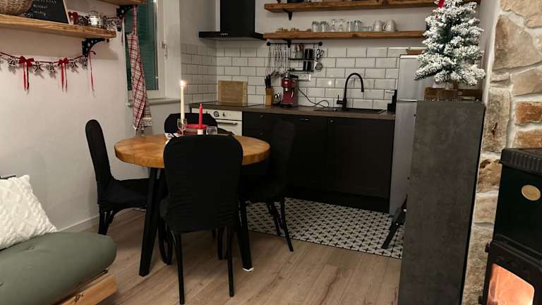 Das Ferienhaus mit Klimaanlage verfügt über 1 Schlafzimmer, ein gemütliches Wohnzimmer sowie eine voll ausgestattete Küche mit Kühlschrank und Kaffeemaschine. Ein Badezimmer mit Dusche und Haartrockner ist ebenfalls vorhanden. Handtücher und Bettwäsche werden bereitgestellt.