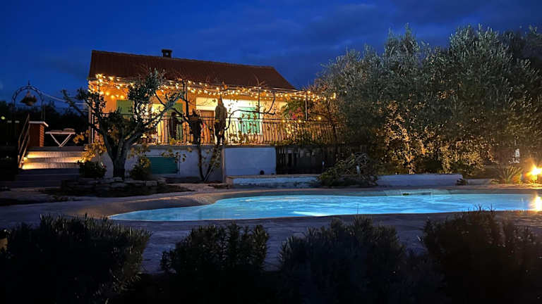 Die Unterkunft *Lastavica* bietet eine heimelige Atmosphäre mit einem saisonalen Aussenpool, einem gepflegten Garten und einer einladenden Terrasse. Sie ist ideal für Gäste, die eine ruhige Ferienunterkunft mit Bergblick suchen.