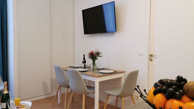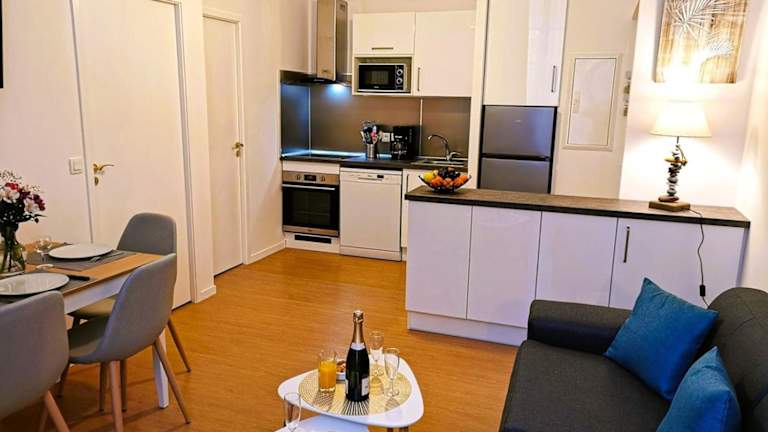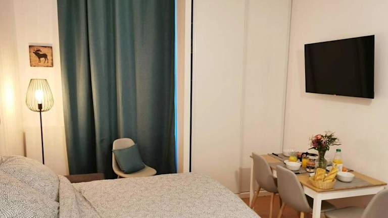 Die Ferienwohnung besteht aus einem Schlafzimmer, einem Wohnzimmer und einer voll ausgestatteten Küche mit Kühlschrank und Kaffeemaschine. Das Badezimmer verfügt über eine Dusche und einen Haartrockner. Handtücher und Bettwäsche können gegen Aufpreis bereitgestellt werden.