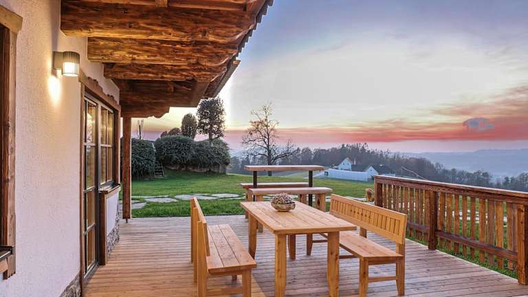 Das Luxus Ferienhaus - Alpine Eleganz trifft Outdoor-Jacuzzi und Zirbensauna befindet sich in Pirching am Traubenberg, nur 22 km von der Merkur Arena und 25 km vom Opernhaus Graz entfernt. In der Umgebung bietet sich eine Vielzahl an Aktivitäten wie Wandern, Skifahren und Velofahren an.