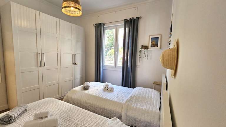 Die Unterkunft bietet zwei Schlafzimmer, ein Wohnzimmer und eine voll ausgestattete Küche mit Kühlschrank und Kaffeemaschine. Das Badezimmer verfügt über eine Dusche und einen Haartrockner. Für Unterhaltung sorgt ein Flachbild-TV.