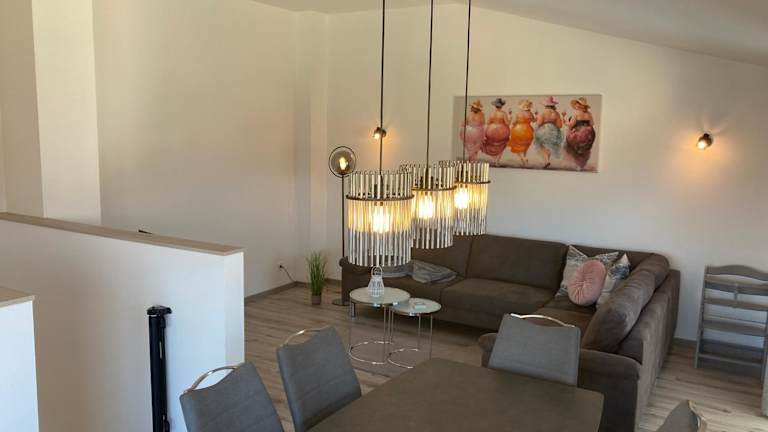 Die Ferienwohnung umfasst 3 Schlafzimmer und ist ausgestattet mit einem TV sowie einer voll ausgestatteten Küche. Diese beinhaltet einen Kühlschrank, Geschirrspüler, Waschmaschine, Ofen und Herdplatte, was die Selbstverpflegung erleichtert.
