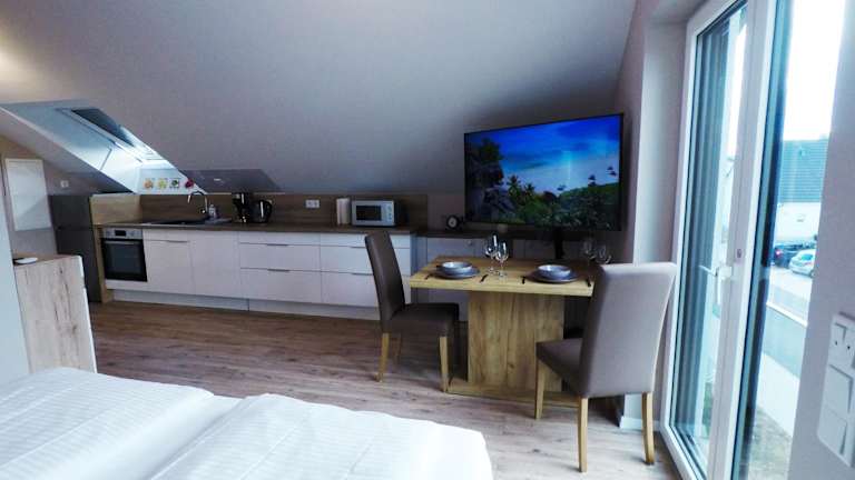 Das -Neubau- 30qm Dach-Apartment bietet Übernachtungsmöglichkeiten in einer modernen und heimeligen Atmosphäre. Die Unterkunft verfügt über einen Privatparkplatz vor Ort und kostenloses Wifi. Die Unterkunft ist Nichtraucher und erlaubt keine Feiern.