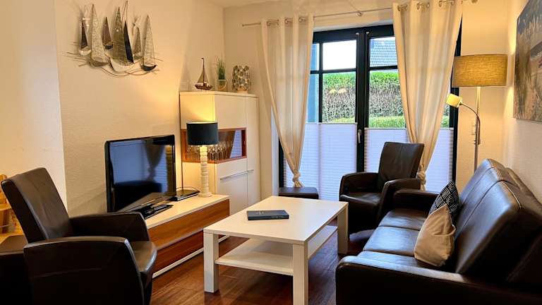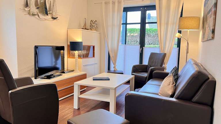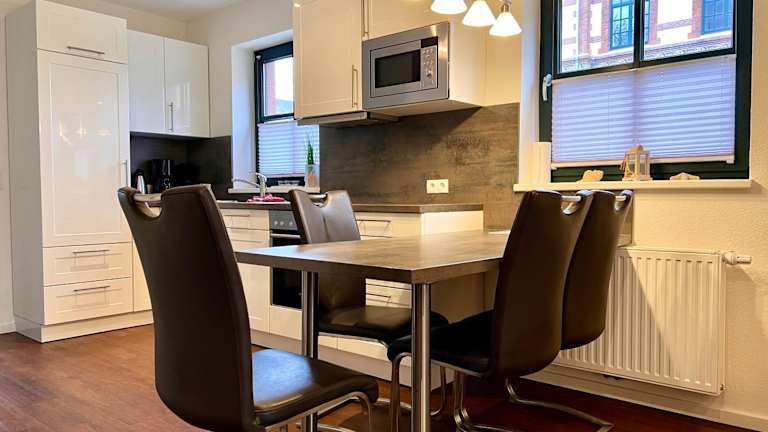 Die Unterkunft "Windrose" in der Villa am Marienhof bietet ein heimeliges Ambiente mit komfortablen Annehmlichkeiten. Dazu gehört kostenloses Wifi und eine einladende Terrasse, die Gästen einen Ort zur Erholung und Entspannung bietet.