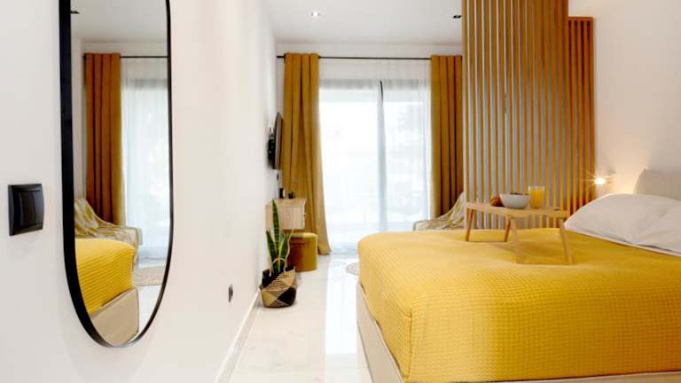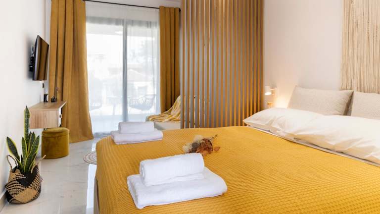 Die 06 SUITE ist ein klimatisiertes Apartment mit einem Schlafzimmer, einem Wohnzimmer und einer voll ausgestatteten Küchenzeile. Das Apartment verfügt über einen Balkon mit Blick auf den Garten und einen eigenen saisonalen Außenpool. Die Küchenzeile ist mit einem Kühlschrank und einer Kaffeemaschine ausgestattet. Das Badezimmer verfügt über eine Dusche und kostenlose Pflegeprodukte. Handtücher und Bettwäsche werden im Apartment gestellt.