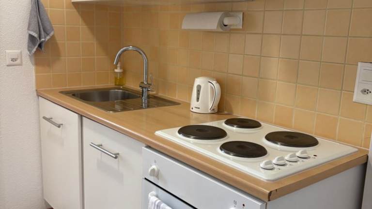 Das Appartement hat ein Schlafzimmer, einen Flachbild-TV mit Satellitenkanälen sowie eine gut ausgestattete Küche, die mit einem Kühlschrank und einem Ofen versehen ist. Zudem gibt es ein Badezimmer mit einer Dusche. Handtücher und Bettwäsche werden zur Verfügung gestellt.