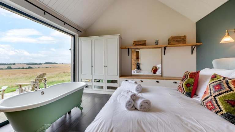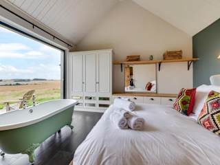 Das Ferienhaus umfasst ein Schlafzimmer sowie eine Küche, die mit einem Kühlschrank und einem Geschirrspüler ausgestattet ist. Ein Badezimmer mit Dusche, Haartrockner und Waschmaschine steht ebenfalls zur Verfügung. Zur Ausstattung gehören Handtücher und Bettwäsche.