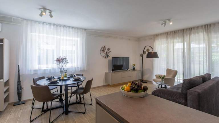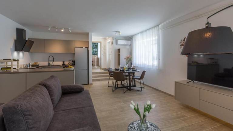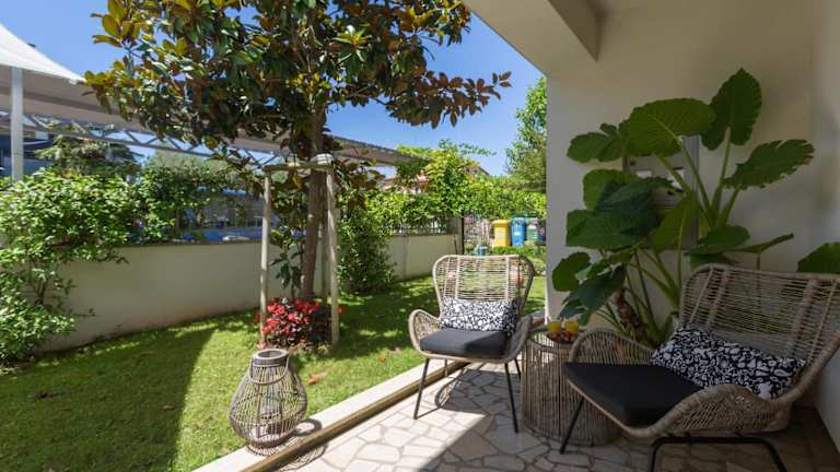 Die Unterkunft ist direkt am Strand in Poreč gelegen, nur 1,5 km vom Strand Laguna entfernt. Weitere nahegelegene Attraktionen sind der Stadtplatz Poreč (2,6 km) und der Wasserpark Aquacolors Poreč (6,2 km). Die Kirche der heiligen Euphemia in Rovinj ist 42 km entfernt, während der Aquapark Istralandia 27 km von der Unterkunft entfernt ist.