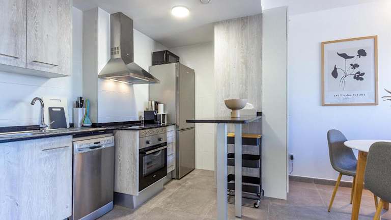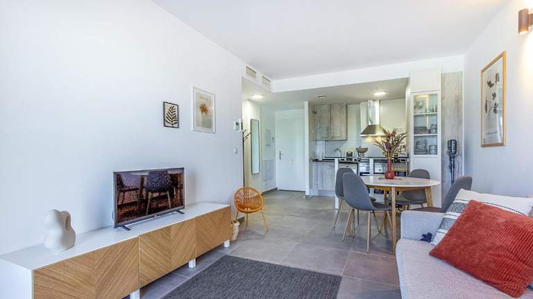 Die Unterkunft bietet eine klimatisierte Ferienwohnung mit einem Balkon, einem Schlafzimmer, einem Wohnzimmer sowie einer gut ausgestatteten Küche mit Kühlschrank und Geschirrspüler. Gäste profitieren von einem Privatparkplatz vor Ort sowie kostenlosem Wifi.