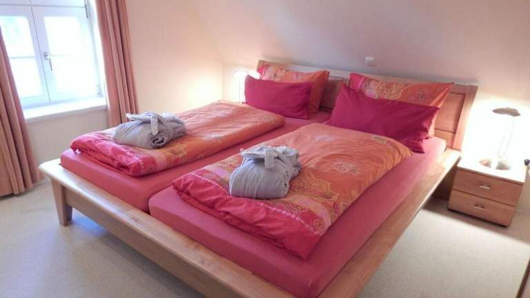 Die Zimmer bestehen aus zwei Schlafzimmern und einem Badezimmer. Die Ausstattung beinhaltet Bettwäsche, Handtücher, einen TV mit Kabelkanälen sowie eine voll ausgestattete Küche. Des Weiteren steht ein Balkon mit Blick auf den Garten zur Verfügung.