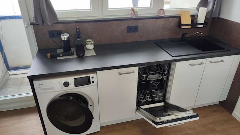 Die Ferienwohnung hat ein Schlafzimmer und ein Wohnzimmer, ausgestattet mit einem Flachbild-TV. Die Küche ist mit einem Kühlschrank und einem Geschirrspüler gut ausgestattet. Im Badezimmer befindet sich eine Badewanne. Handtücher und Bettwäsche werden zur Verfügung gestellt.