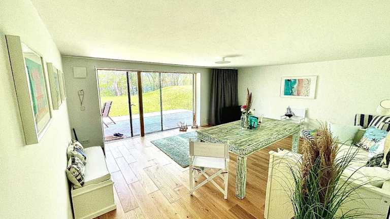 Das Haus am See bietet eine Ferienwohnung mit einem Garten, kostenlosem WLAN und einem Conciergeservice. Zu den weiteren Annehmlichkeiten zählen ein Geldautomat und ein Fahrradverleih. Für die Gäste stehen ein kostenloser Privatparkplatz sowie eine Terrasse mit Seeblick zur Verfügung.