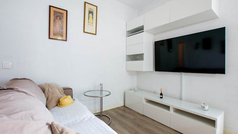 Die Ferienwohnung umfasst ein Schlafzimmer, ein Wohnzimmer mit Flachbild-TV, eine gut ausgestattete Küche mit Kühlschrank und Mikrowelle sowie ein Badezimmer mit Dusche. Zusätzliche Bequemlichkeit bieten eine Terrasse mit Meerblick sowie die Bereitstellung von Handtüchern und Bettwäsche.