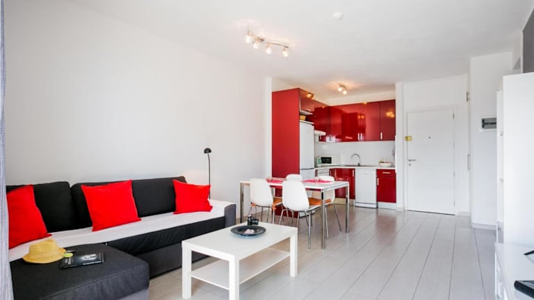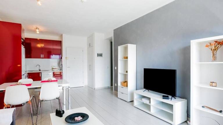 Die Wohnung hat ein Schlafzimmer sowie ein Wohnzimmer. Es stellt einen Flachbild-TV, ein Badezimmer mit Dusche, sowie Handtücher und Bettwäsche zur Verfügung.