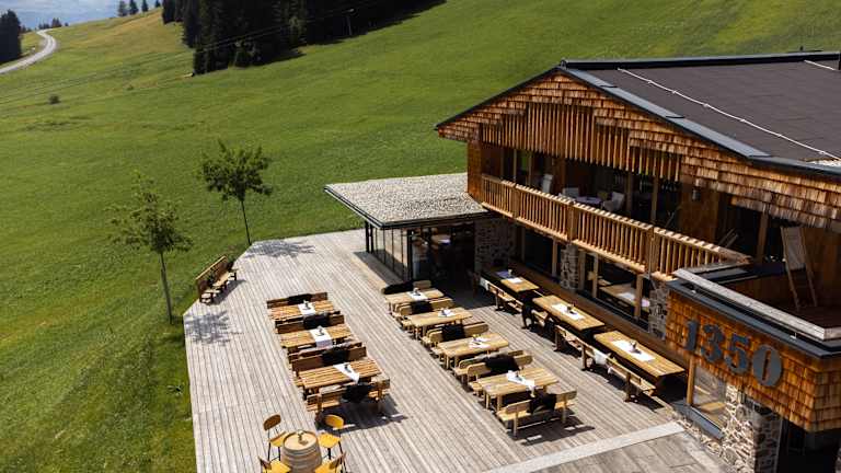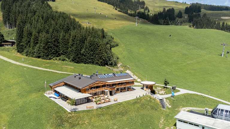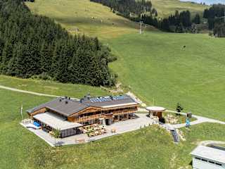 1350 – Die Alm über Saalbach ist eine neu renovierte Hütte mitten im Skicircus Saalbach Hinterglemm, welche höchsten Komfort und feinste Hüttenkulinarik bietet. Das Bergrestaurant ist sowohl für externe als auch für Hausgäste im Winter geöffnet und der perfekte Einkehrschwung für Skifahrer. Im Sommer ist das Bergrestaurant geschlossen. Erholungssuchende können jedoch im Sommer wie Winter in den zwei hochwertig ausgestatteten, großräumigen Appartements mit Panoramasauna und eigenem Ski-/Bikekeller der Alm nächtigen. Diese bieten Platz für bis zu 5 oder bis zu 7 Personen und sind im Winter mit der Gondel und im Sommer auch mit dem Auto erreichbar.
