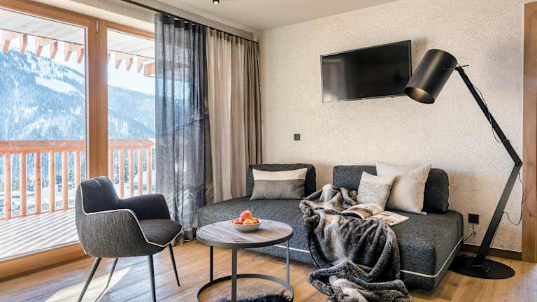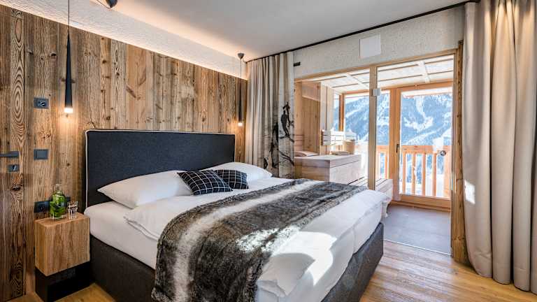 Die Alm verfügt über zwei großräumige Appartements im alpin-eleganten und traditionellen Stil mit Platz für bis zu 5 oder bis zu 7 Personen. Die Appartements verfügen über einen eigenen Balkon und Ski- und Bikekeller. Das Highlight der Appartements ist die private Panoramablick-Sauna.