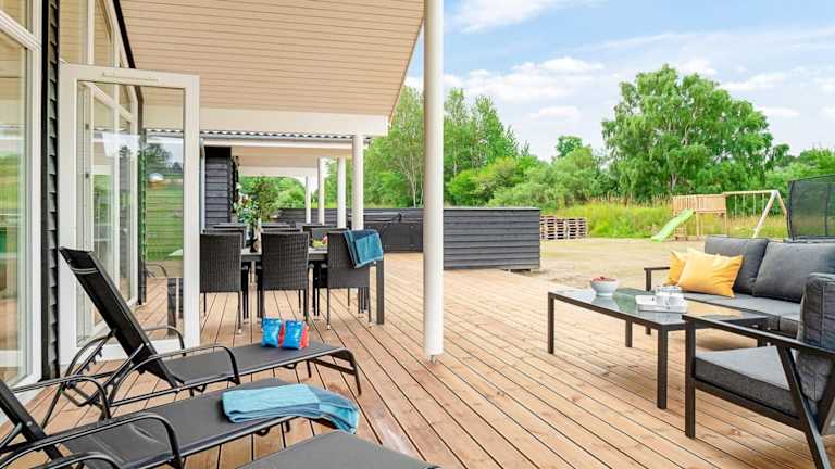 Das Ferienhaus bietet Übernachtungsmöglichkeiten für bis zu 14 Personen. Es ist mit einer Terrasse, Grillmöglichkeiten und kostenlosem Wifi ausgestattet. Zur Entspannung steht den Gästen eine Sauna zur Verfügung. Zudem gibt es einen Kinderspielplatz für die kleinen Gäste.