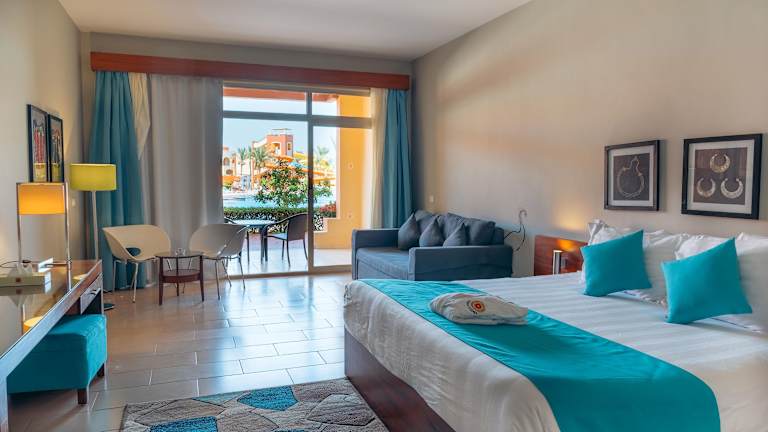 In den Zimmern sorgen Klimaanlage und Heizung für ein angenehmes Raumklima. Die Gäste können den Meerblick von Balkon oder Terrasse geniessen. Die Ausstattung umfasst zudem eine Minibar, einen Kühlschrank und ein Direktwahltelefon. Die Badezimmer sind mit Dusche und Badewanne ausgestattet und verfügen über einen Haartrockner.