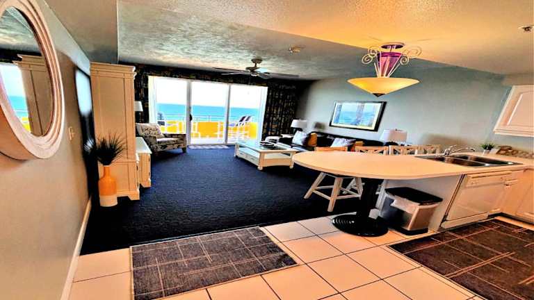 Die Unterkunft 16th Floor 1 BR Resort Condo Direct Oceanfront Wyndham Ocean Walk Resort Daytona Beach 1605 bietet Übernachtungsmöglichkeiten direkt am Strand. Ausgestattet mit einem Aussenpool, einem Restaurant, einer Bar und kostenlosem Wifi. Die Unterkunft ist eine Nichtraucherwohnung und es besteht die Möglichkeit zur Nutzung eines Whirlpools. Der Innenpool kann ebenfalls genutzt werden.