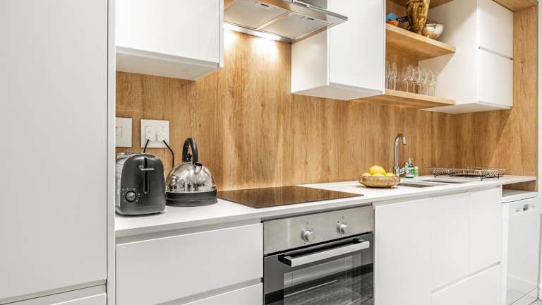 Die Ferienwohnung verfügt über 2 Schlafzimmer, eine Küche mit Kühlschrank und Geschirrspüler, einen Sitzbereich sowie 2 Badezimmer mit Dusche. Handtücher und Bettwäsche sind vorhanden.