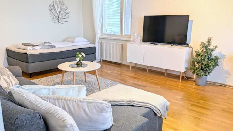 Die Unterkunft 18 - Cozy apartment with view, top 7th floor ist gelegen in Kemi, in der Nähe des Flughafens Kemi-Tornio, der sich 5 km entfernt befindet. Die Lage bietet einen schönen Stadtblick und einen Garten.