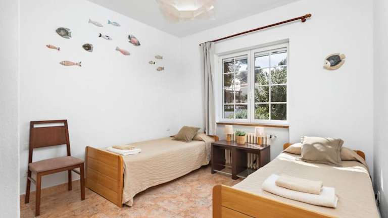 Das Ferienhaus verfügt über Klimaanlage, 4 Schlafzimmer, ein Wohnzimmer und eine voll ausgestattete Küche, die mit einem Kühlschrank ausgestattet ist. Es stehen 3 Badezimmer mit Bidet und Haartrockner zur Verfügung. Handtücher und Bettwäsche werden zur Verfügung gestellt.