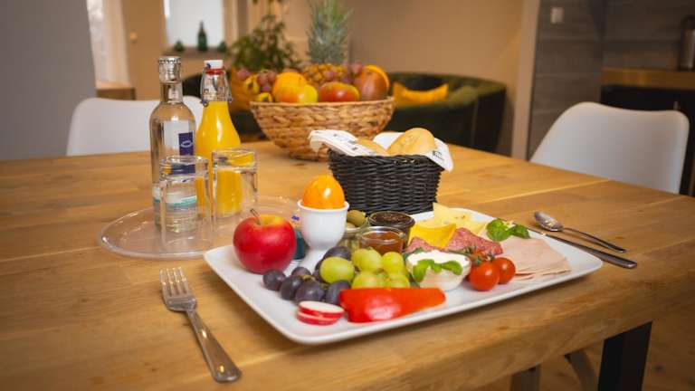 In den Wohneinheiten gibt es eine voll ausgestattete Küche, die es Gästen ermöglicht, eigene Speisen zuzubereiten. Auf Anfrage werden auch spezielle Ernährungsbedürfnisse berücksichtigt und Essenslieferungen sind möglich. Zimmerservice ist ebenfalls verfügbar.