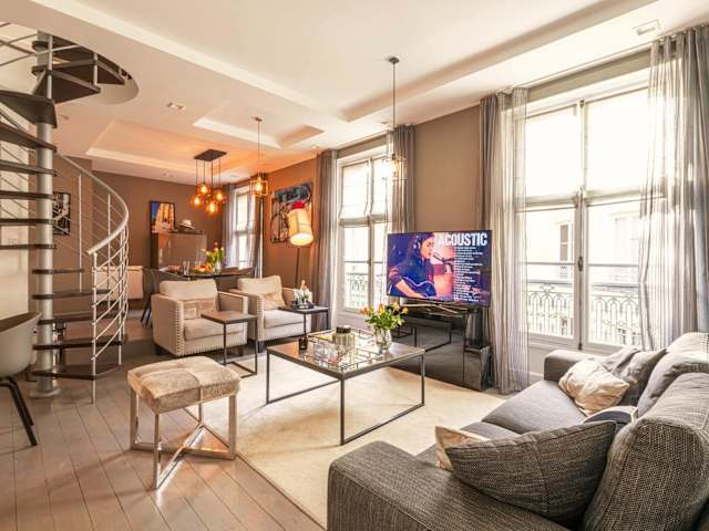 Die Unterkunft befindet sich im Zentrum von Paris, nur 1 Minute zu Fuss von den berühmten Champs Elysées entfernt. In der Umgebung liegen bedeutende Sehenswürdigkeiten wie der Triumphbogen, die Opéra Garnier und der Tuileries-Park. Der Flughafen Paris-Orly ist 17 km entfernt.