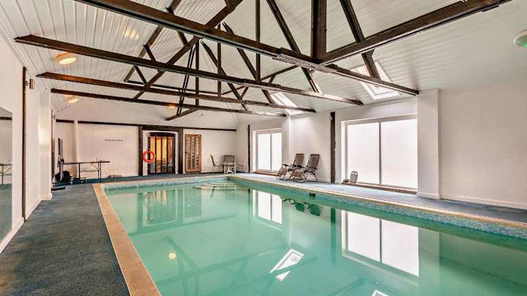 Die Unterkunft bietet einen Innenpool, der ganzjährig nutzbar ist, sowie eine Sauna für entspannende Momente. Tischtennis ist ebenfalls verfügbar, um aktiv zu bleiben. Die Möglichkeit, den privaten Pool für vier Stunden täglich zu nutzen, bietet zusätzlichen Freizeitwert.