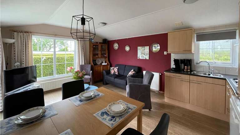 Das Ferienhaus ist ausgestattet mit einer voll ausgestatteten Küche, die über einen Kühlschrank und Geschirrspüler verfügt. Es sind zwei Badezimmer vorhanden, die mit einer Dusche ausgestattet sind.