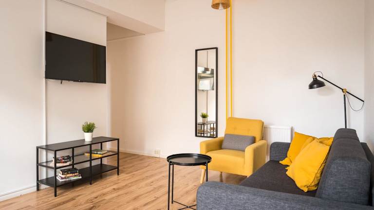 Das Apartment verfügt über zwei Schlafzimmer, ein Wohnzimmer sowie eine voll ausgestattete Küche mit einem Kühlschrank und einem Geschirrspüler. Handtücher und Bettwäsche werden zur Verfügung gestellt. Kostenloses WLAN sowie ein TV runden die Annehmlichkeiten ab.