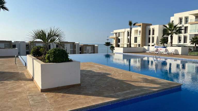 Die Unterkunft befindet sich in Sidi Bouqnadel, nur 200 Meter vom Strand Plage des Nations entfernt. Die Umgebung bietet vielseitige Freizeitmöglichkeiten und eine schöne Küstenlandschaft.