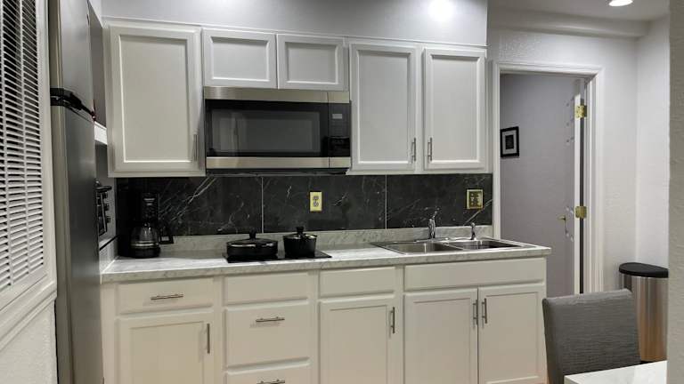 Es besteht die Möglichkeit zur Lebensmittellieferung gegen zusätzliche Gebühren. Das Apartment bietet eine voll ausgestattete Küchenzeile, sodass Gäste ihre eigenen Mahlzeiten zubereiten können.
