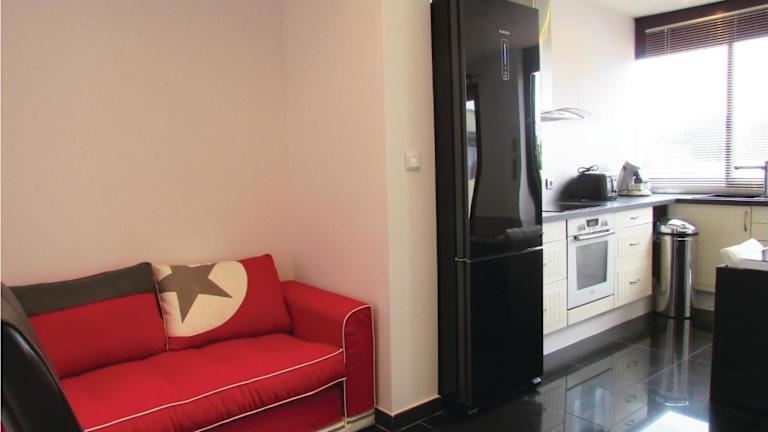 Die Ferienwohnung verfügt über eine voll ausgestattete Küche mit einem Kühlschrank und einer Kaffeemaschine, sodass Selbstverpflegung möglich ist. Weitere gastronomische Angebote sind nicht direkt angegeben.
